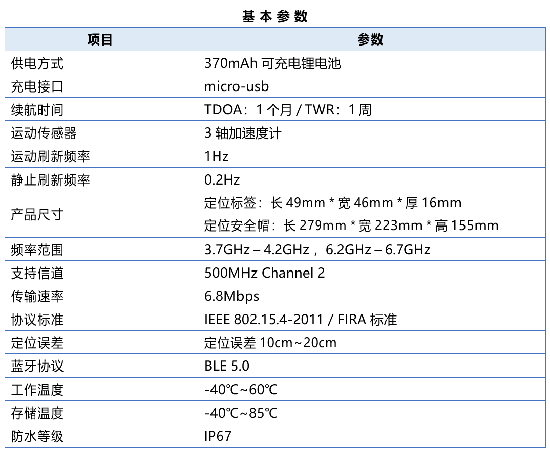 定位安全帽(YJ-UWBZD-04),采用Nordic公司的NRF52832单 片机作为主控芯片,搭载我公司独家自研的UWB大功率MAX2001-CA射频模块,基于UWB 的室内高精度算法,实现工卡的超低功耗待机,定位包的收发控制等。可以实现佩戴人 员的高精度室内定位。安全帽内置加速速度传感器,智能切换人员运动和静止时的定位 频率,实现最低功耗的待机。