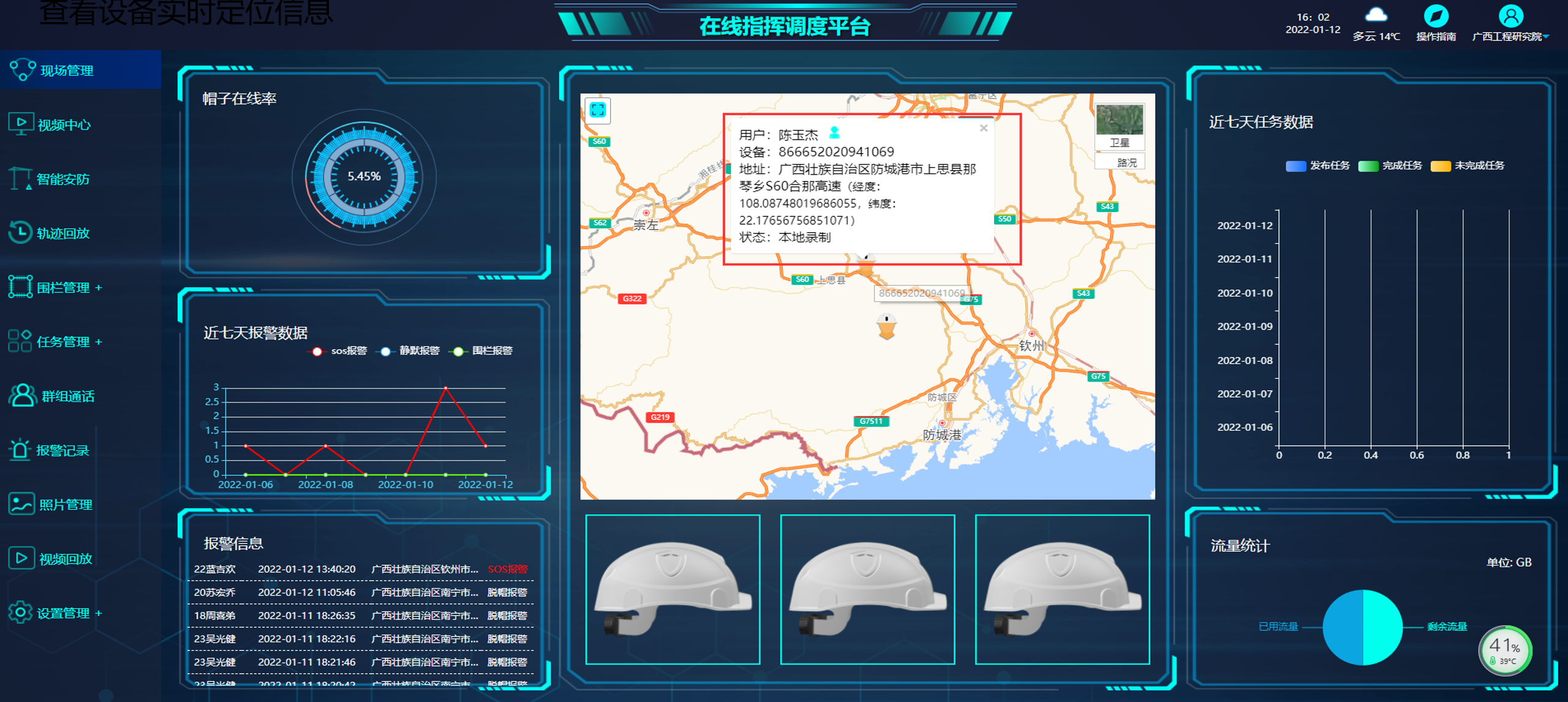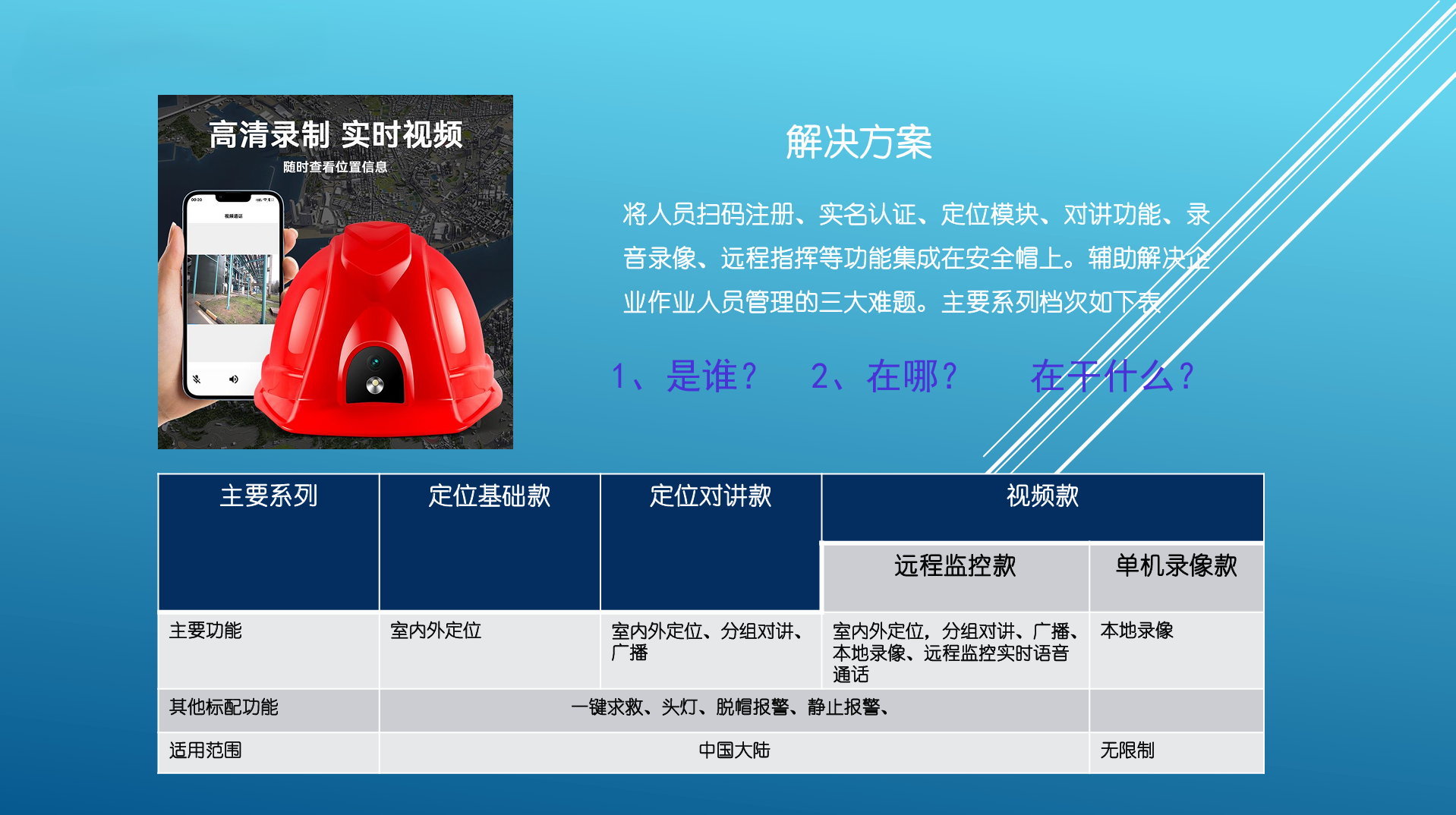 全网通智能安全帽(YJ-BDSGPS-02)将人员定位、对讲功能、录音录像、远程指挥等功能集成在安全帽上。 辅助解决企业作业人员管理的“是谁”、“在哪”、“在干什么”三大难题。功能简洁清晰、可靠性高、易上手,物美价廉。做到功能不浪费、费用不浪费。 APP,PC端软件简洁可靠,适合中小作业班组直接上手使用。