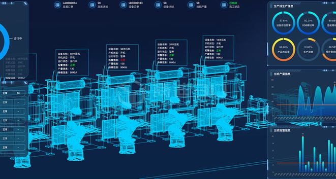 在孪生平台中接入集控系统的指标数据,再将数据按照业务板块进行合理划分,分业务,分重点,分层次进行数据集中展示,其中包括但不限于:“综合态势”“安消管理”“设备管理”“场站运维”“环境监测”, 通过菜单选项卡进入不同的业务版块,查看属于该板块的业务数据,以孪生底座为基础,对上述原始数据进行标准化、结构化的处理,将这些数值转换成视觉结构(包括形状、位置、尺寸等),将结构进行组合, 转换成丰富的图表嵌入孪生平台,通过前导数据驾驶舱的形式传递给用户。