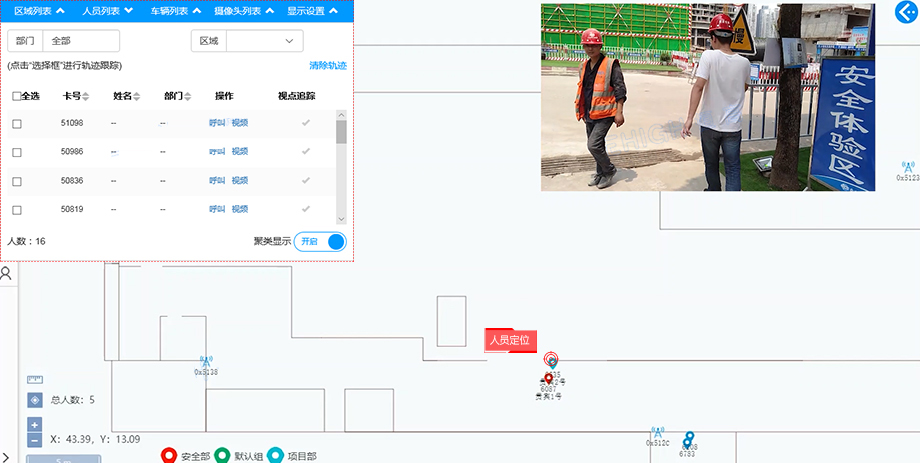 实时定位与人员分布: