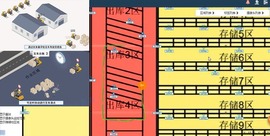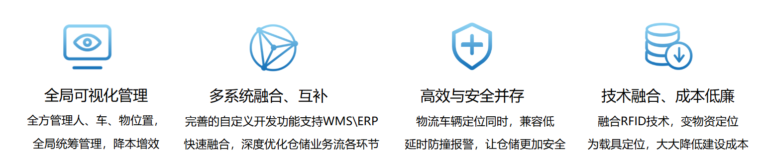 仓储物流UWB定位系统,采用UWB定位技术,通过在仓储物流区部署一定数量的定位基站,仓储物流区重要物资加装UWB定位标签,可直接实现对重 要物资的实时定位管理。车辆加装定位防撞基站或定位标签,对车辆的实时位置进行精确监控,结合车辆调度系统,可以实现仓储物流区内,车辆进行状态 监控和调度管理。库内载具加装定位标签,结合RFID或条码信息,配合PDA扫码配对,可提高仓储物流管理中出入库、移库等环节的自动化程度,提高个业务环节效率。