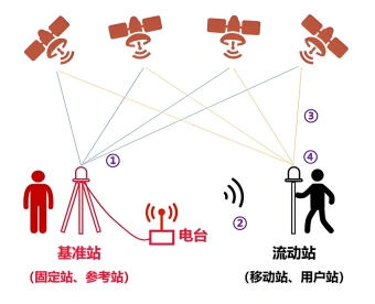 基准站算出与流动站间的误差后,借助无线电台或网络等途径把差分数据发送给流动站,流动站接收后结合自身GNSS信号实时修正定位结果,实现高精度定位。
